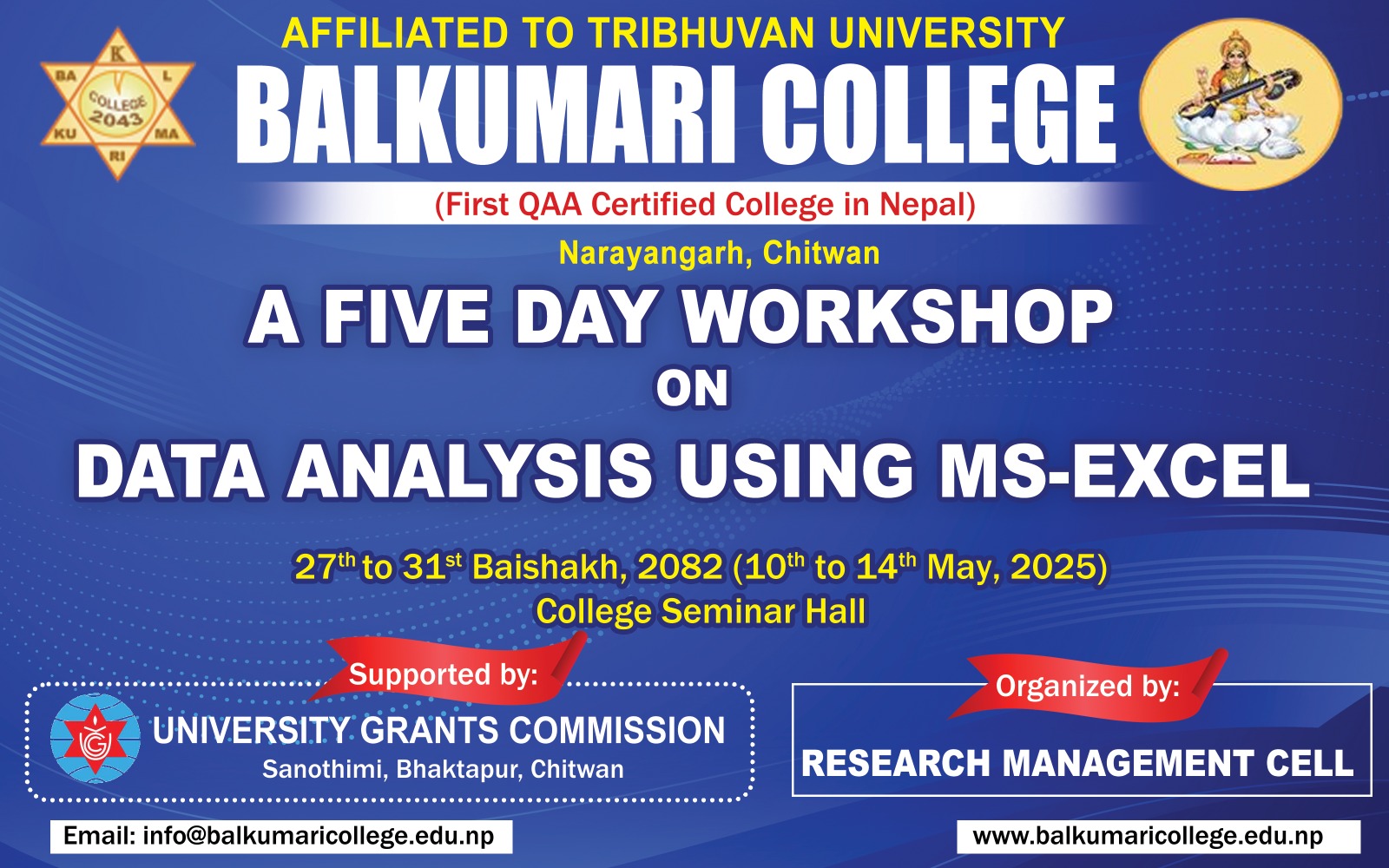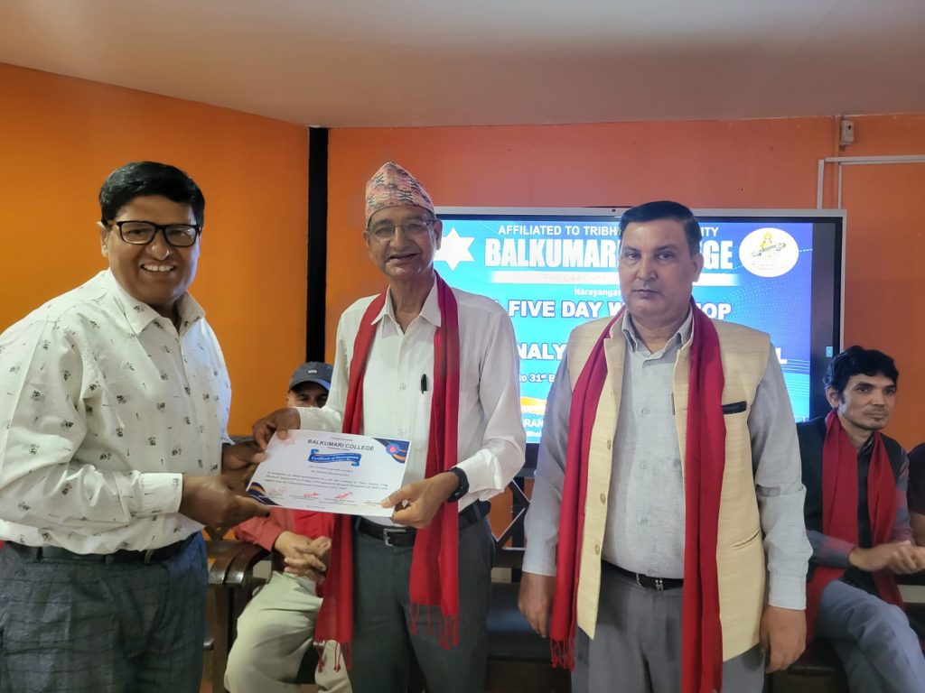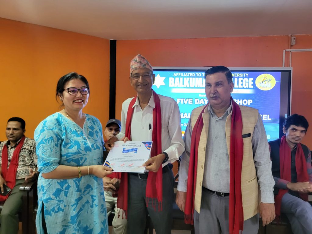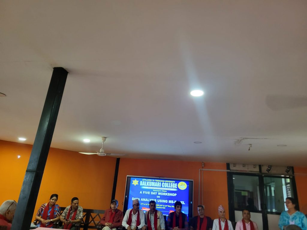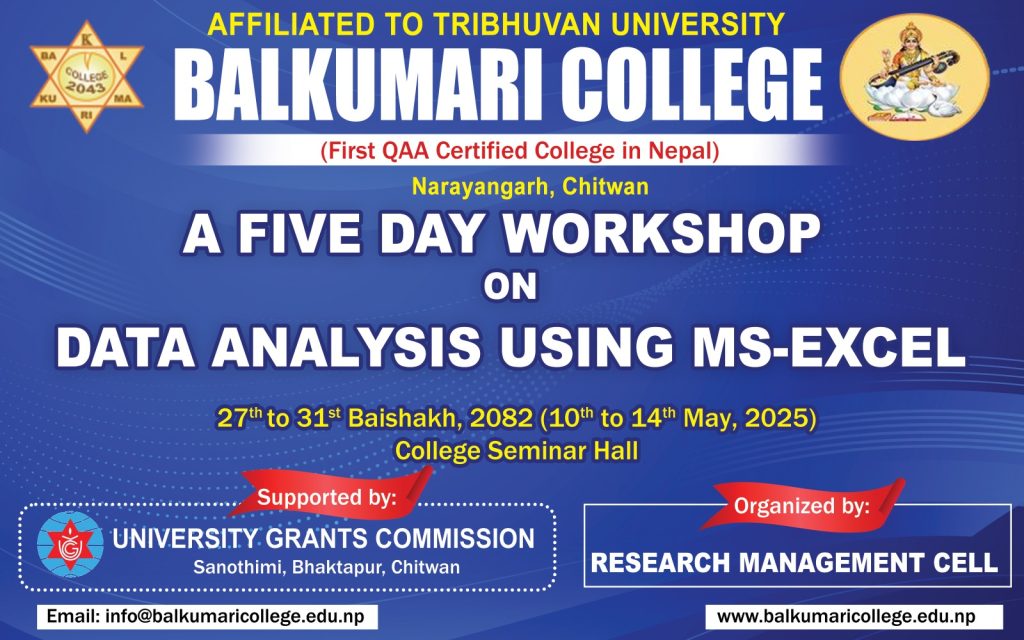 Five-day workshop on data analysis using MS Excel from 2082-01-27 to 2082-01-31.