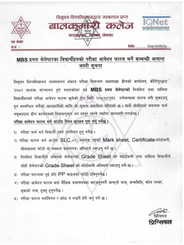 Notice: BBS, B.Ed. and B.Sc. Third Year