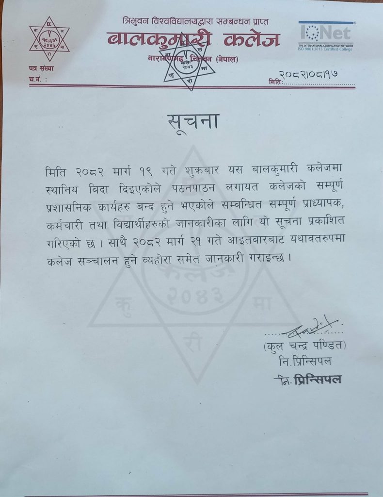 Notice: BBS, B.Ed. and B.Sc. Third Year