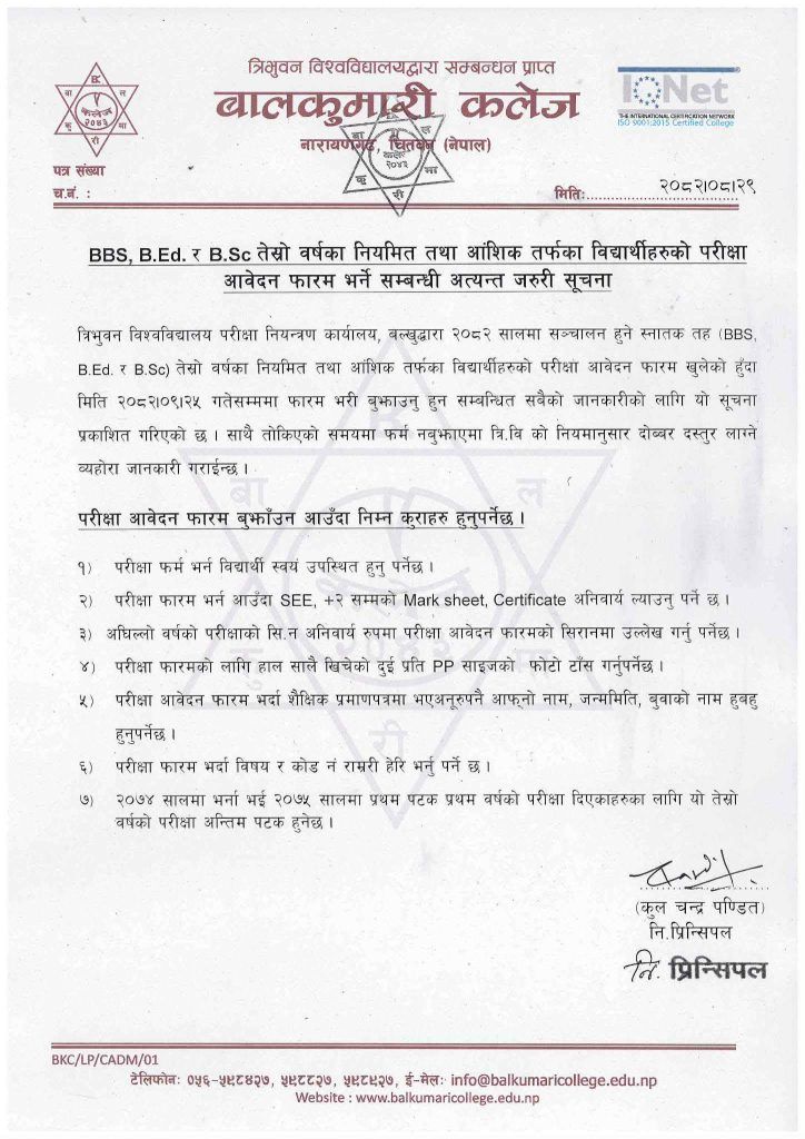 Notice Exam Form: BBS, B.Ed., and B.Sc. II Year
